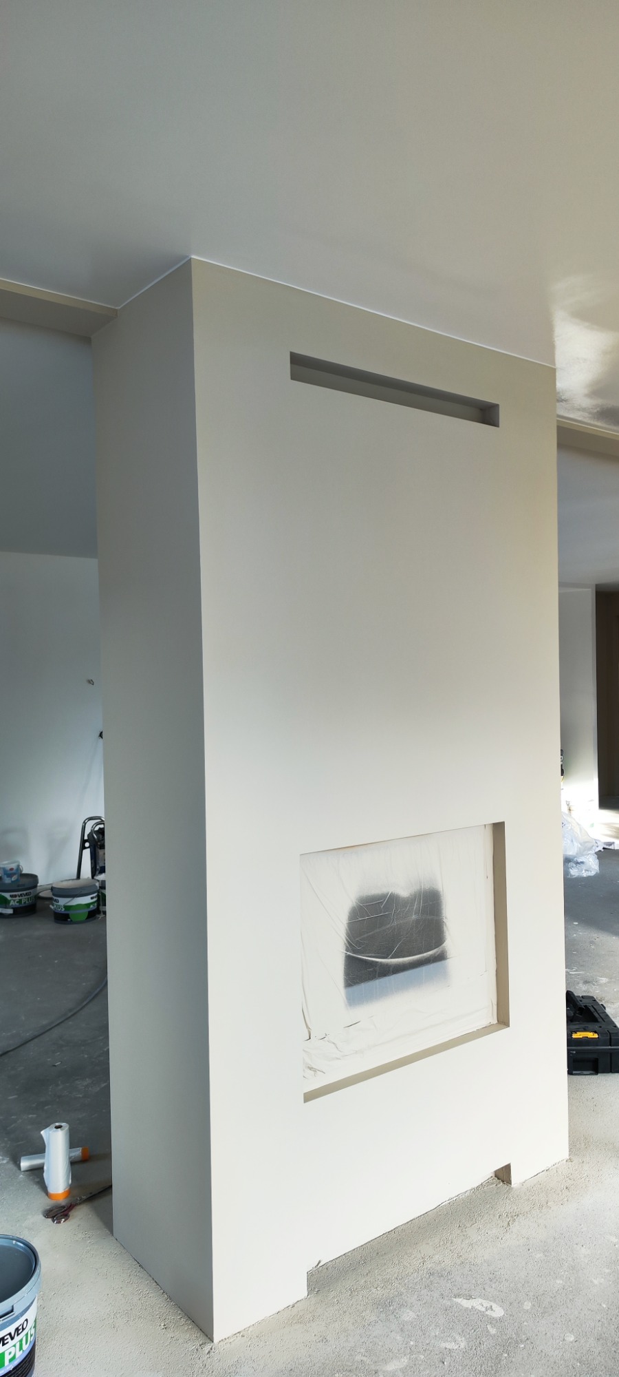 Deze volledige beneden verdieping voorzien van strak latex spuitwerk.